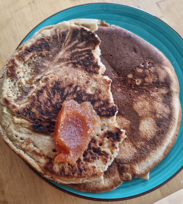 - This is the difficult part. In a hot pan (at mid-heat), use the butter or oil for frying. I used a small frying pan so I just did one big pancake at each time. Wait for the edges to by brown/fried. Dont stir. Once you see (several) bubbles on top, then you can flip the pancakes (I had to add a bit of oil to avoid burning)